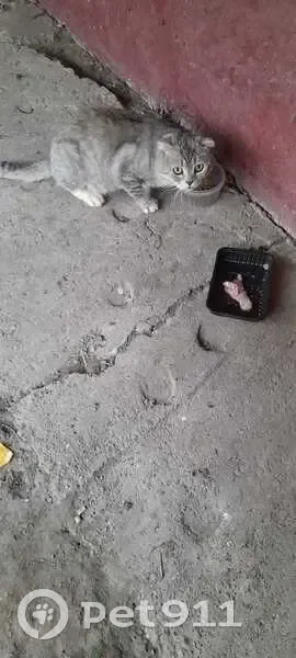 Кот, живёт в подвале, серый, немного вислоухи...