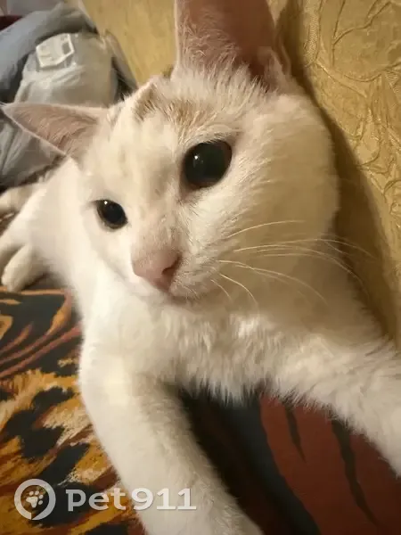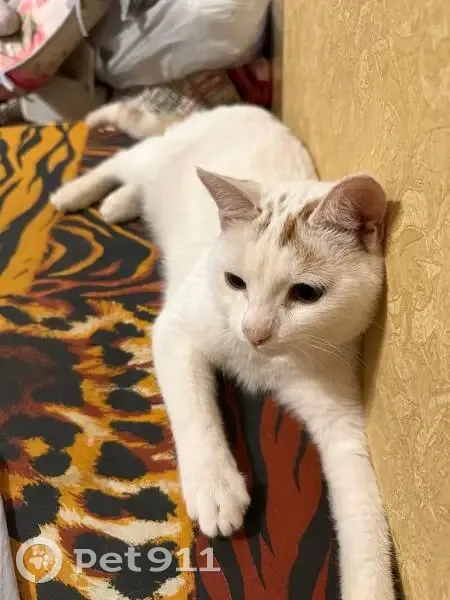 Беленький, ушки и хвостик рыженькие. Кот спок...
