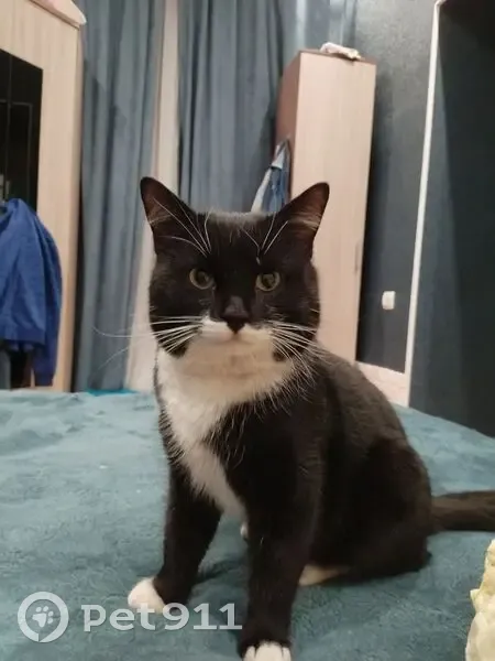 Чёрно-белый кот, белые лапки, взрослый, не ме...