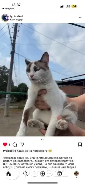 Найдена кошка, Краснодар, фото: Кошка найдена, ул. 40 лет Победы, Краснодар