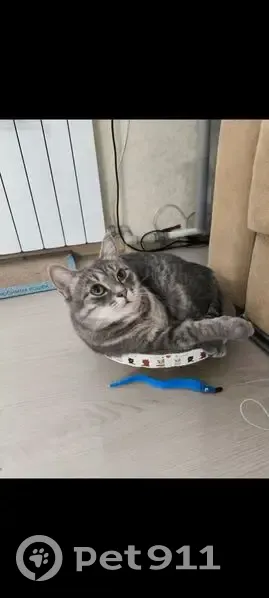 Найдена молодая домашняя кошка .Окрас серый,к...