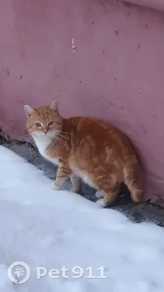 Найден котик, рыжего окраса, упитанный, белая...