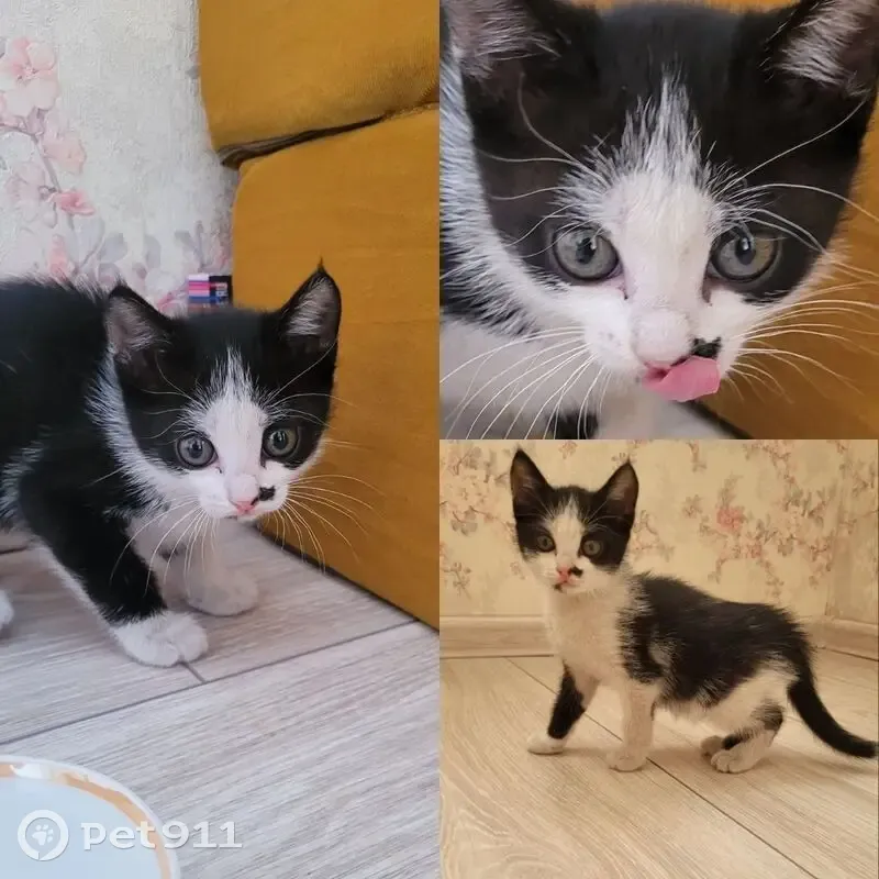 Найден котенок (девочка), черно - белый окрас...