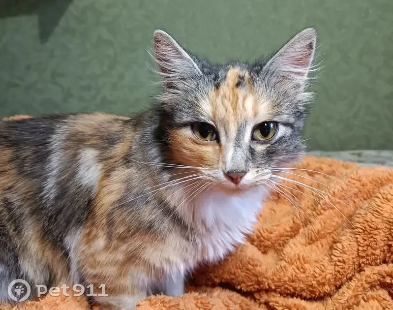 Найдена трёхцветная кошка, домашняя, с ошейни...