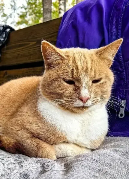 Котик, по виду молодой. Рыже-белый, пузико бе...