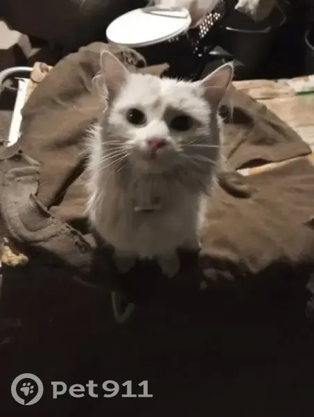 Найден кот, белый, очень ласковый, видно, чт...