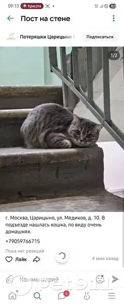 Замечена кот/ кошка, пугливая, хорошо знает «...