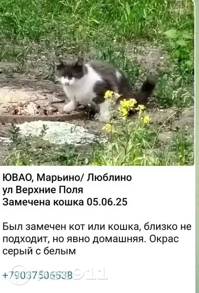 Найдена кошка, Москва, фото: Кошка найдена: Верхние Поля, Москва