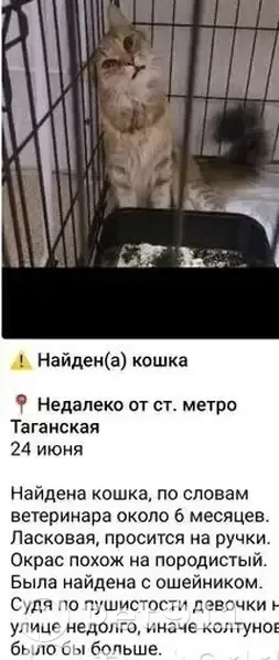 Найдена кошка, Москва, фото: Кошка найдена, Золоторожский Вал 38А/15с1