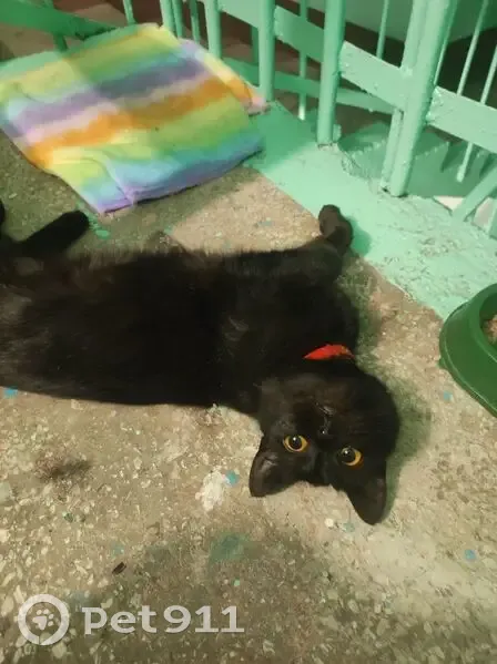 Найдена кошка, Оренбург, фото: Найдена кошка, улица Конституции СССР, 28/2, Оренбург - чёрный окрас, красный ошейник
