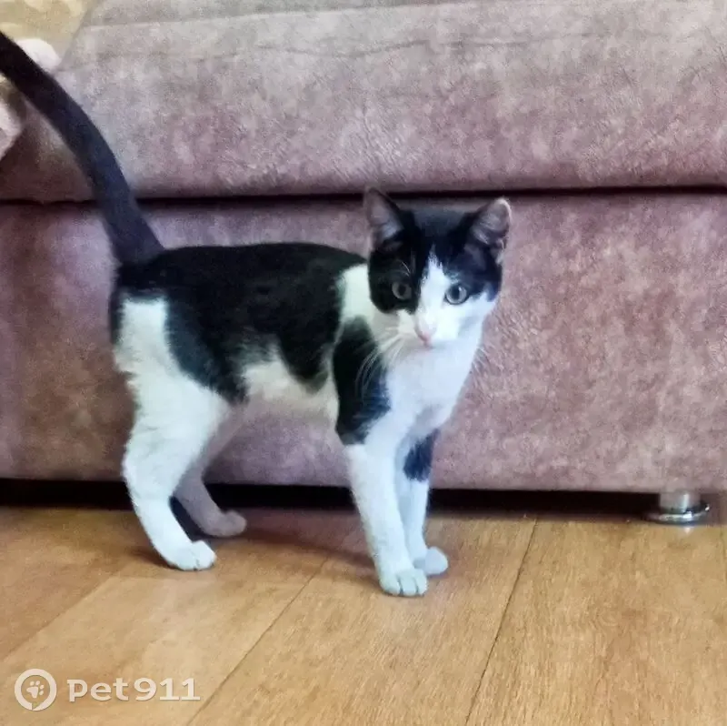 Чёрно-белая кошечка на вид 5-6 месяцев, ушки...