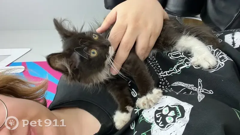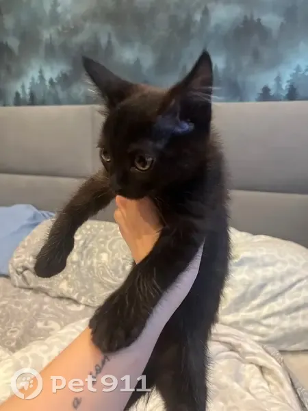 Кошечка вся чёрная,молодая,ласковая. Нашли в...