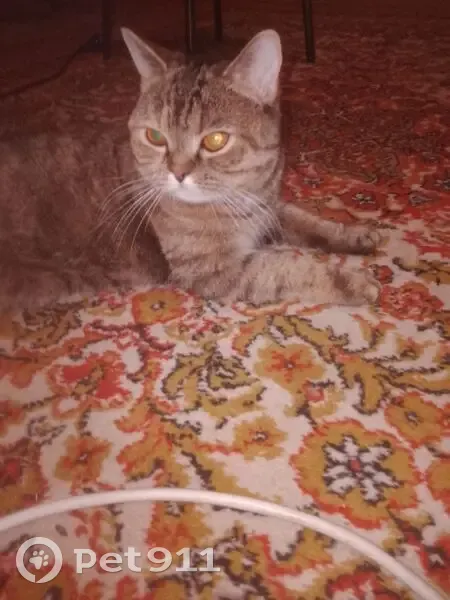 Серый в полосочку, ласковый, видно что домашн...