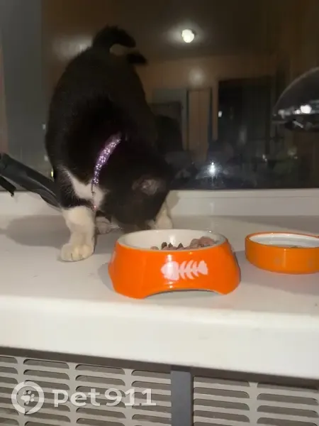Котёнок-подросток чёрного цвета с белыми пятн...