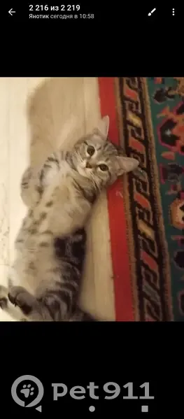 Потерялся кот, окрас полосатый, зеленые глаза...