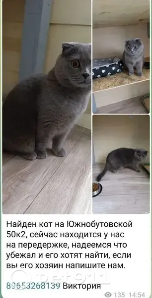 Найдена кошка, Москва, фото: Серый кот найден на ул. Горчакова, Москва