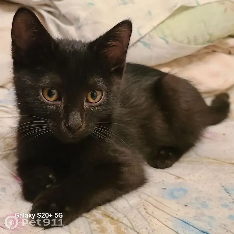 Это мальчик, месяца 3, полностью чёрный. Найд...