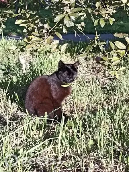 Увидел черную кошку с ошейником от блох, видн...