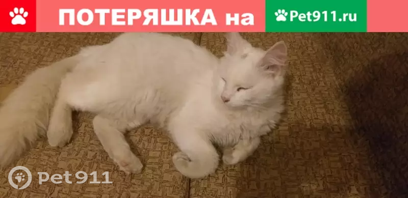 Найден белый кот с черным хвос...