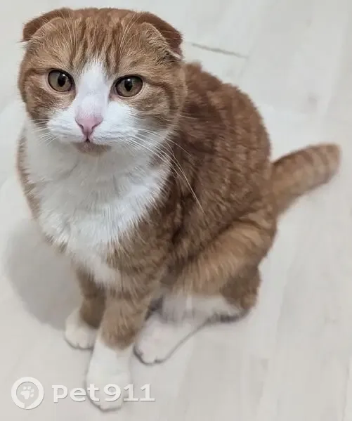 Окрас рыже-белый. Особые приметы: висячие ушк...