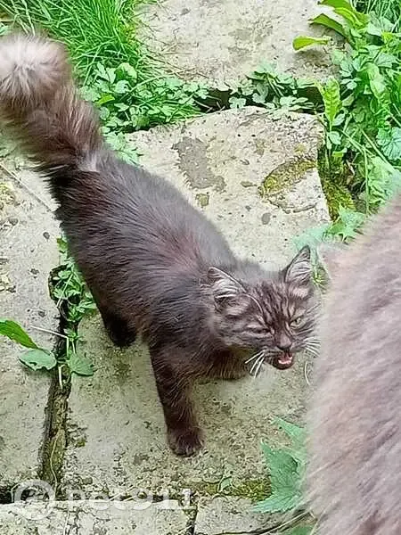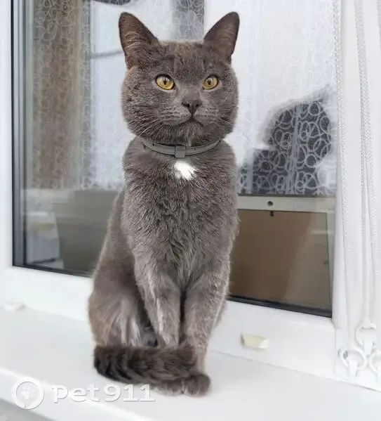 Дымчатый окрас, молодой кот. В ошейнике на гр...