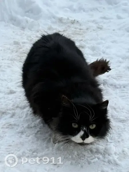 Чёрно-белая кошка, белая грудка и лапки, пуши...