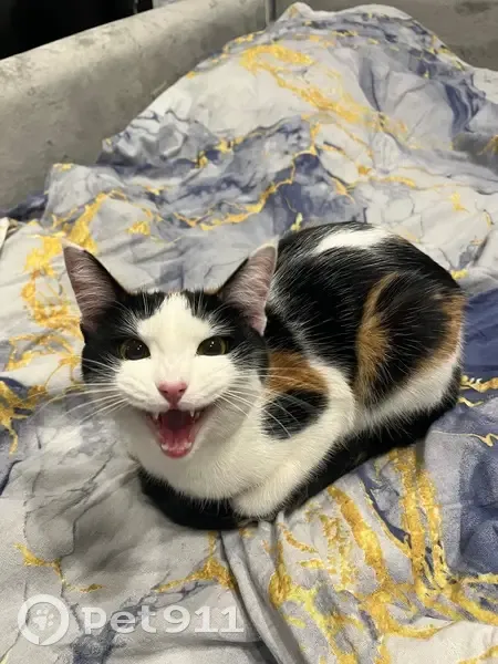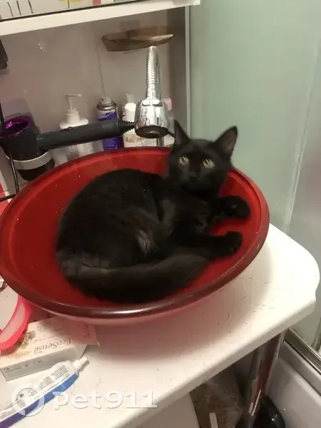 Нашлась кошка. Миниатюрная. Окрас черный с бе...