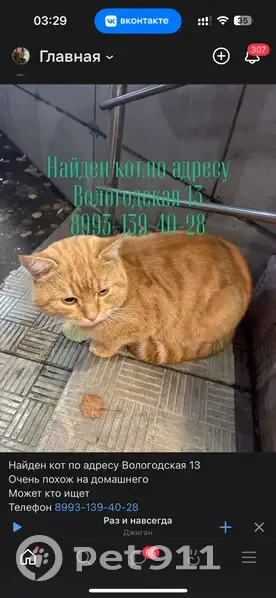 Рыжий кот найден на Набережной...