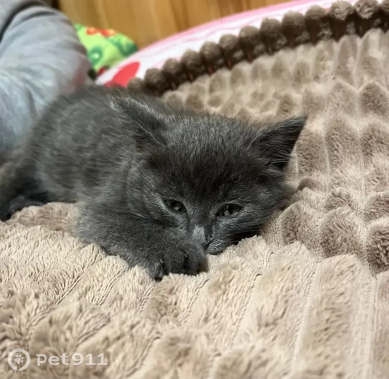 Серый котенок, был найден на улице, в лоток х...