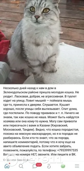 Найдена кошка, , фото: Найдена кошка, Лесной пер., 1, Дубровка