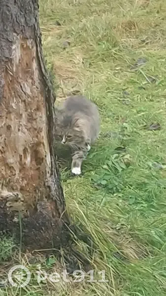 Приблудилась кошка/кот, пушистый, белая грудь...