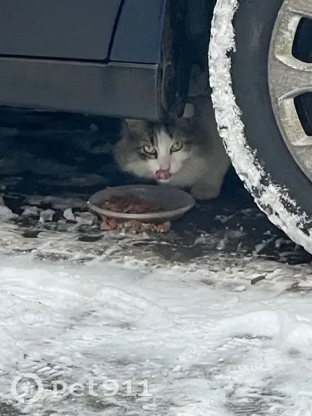Найдена кошка, Санкт-Петербург, фото: Найдена кошка, Большехтинский проспект, 1 к1, Санкт-Петербург - живёт под автомобилем