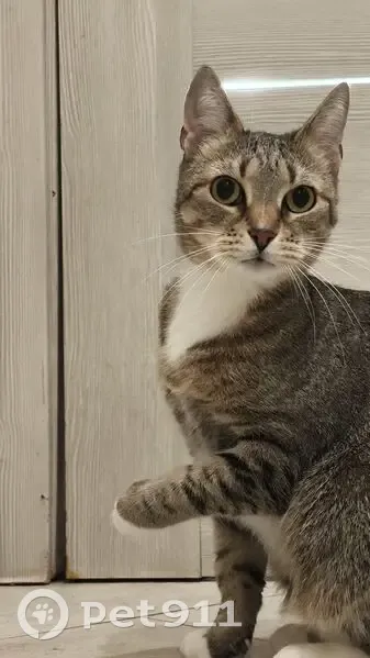 Найдена кошка, Санкт-Петербург, фото: Найдена кошка, улица Коллонтай, Санкт-Петербург - серый полосатый с белой грудкой