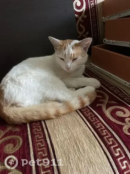 Рыже-белый, скорей всего девочка, есть зелёны...