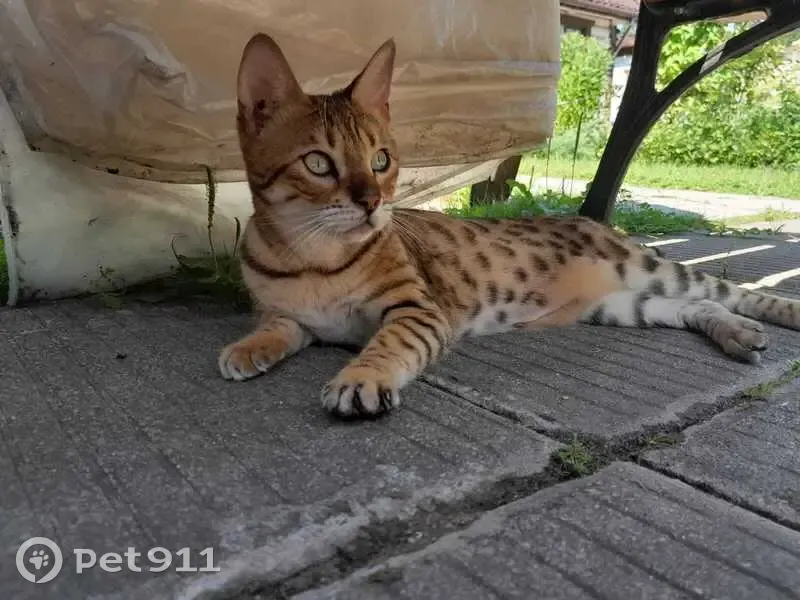 Кошка Бенгальской породы молодая.