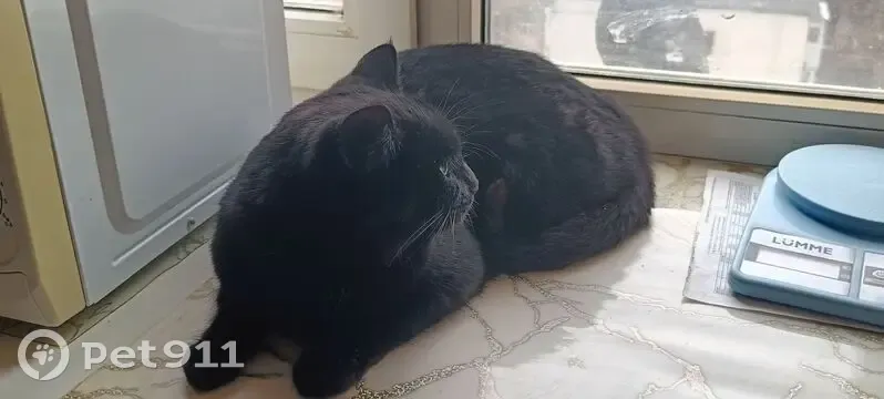 Чëрный кот, взрослый, с когтями, глаза светло...