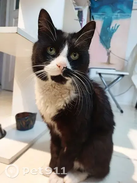 Черный с белым, не кастрирован. Очень человек...