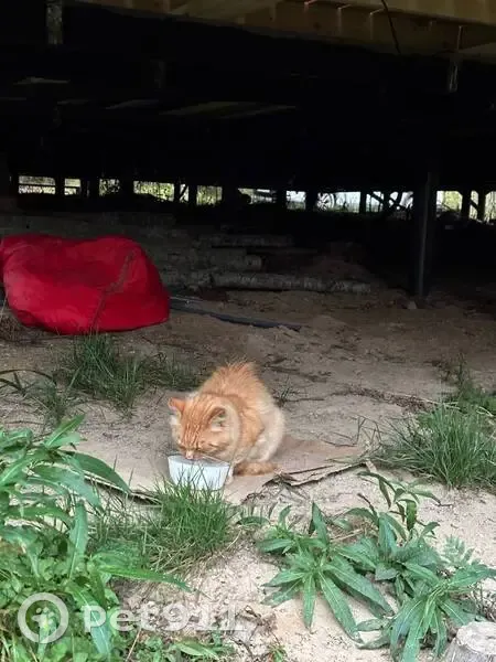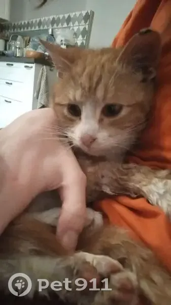 Рыжий кот, молодой, был голодный и с раной на...