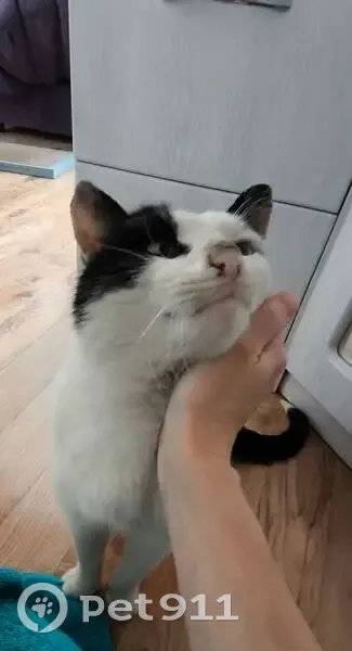 Найдена кошка, Челябинск, фото: Найден кот, улица Бейвеля, 9/1, Челябинск - белый с чёрными пятнами