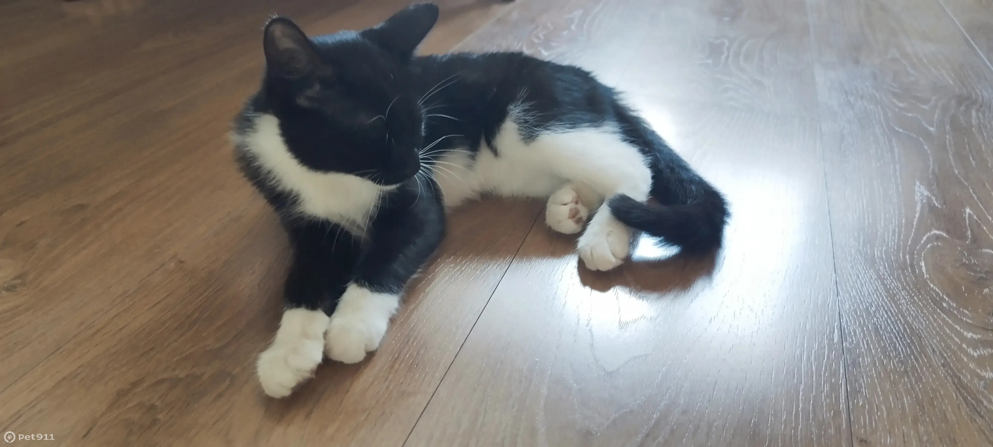 Кот, Окрас черный, Лапки белые на шее ошейник...