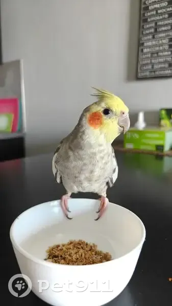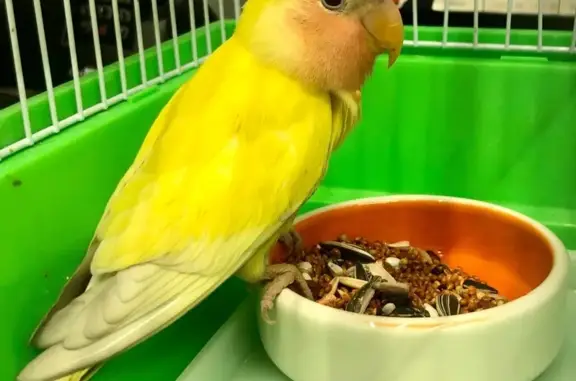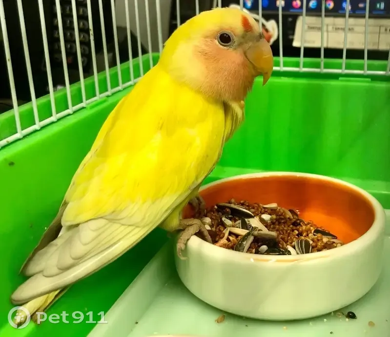 Попугай корелла, жёлтый. Сидит на берёзе на у...