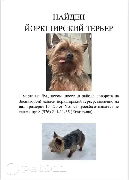 Найдена собака, Звенигород, фото: Найден собака, Луцинское шоссе, Звенигород - Йоркширский терьер с одним зубом