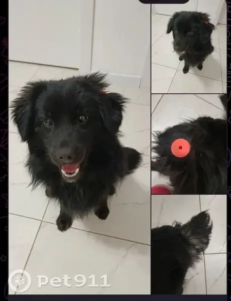 Найдена собака черного цвета, на левом ухе кр...