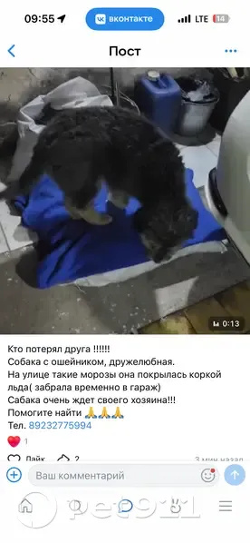 Вчера вечером нашли собаку. В ошейнике с пово...