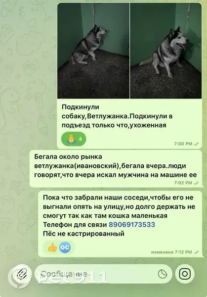 Найдена собака, похожа на хаски / лайку добра...