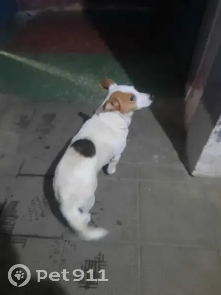 Собачка бело-рыжая с ошейником, на ошейнике н...
