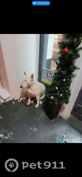 Бультерьер белый найден. Телефон в обьявлении