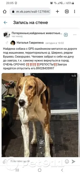 Найдена гончая в Серебряных Кл...