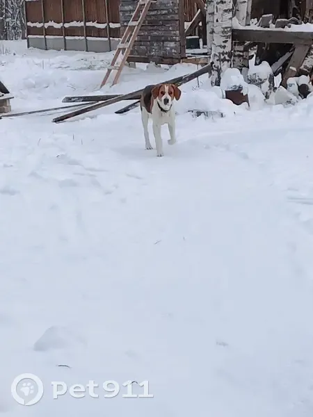 Светлый окрас, похож на бигля. Ухоженный, вид...