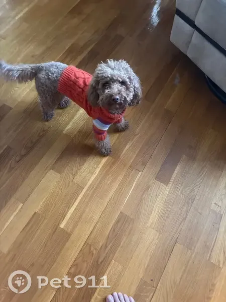 Рыжий, Пудель, в оранжевом свитере со шлейкой...